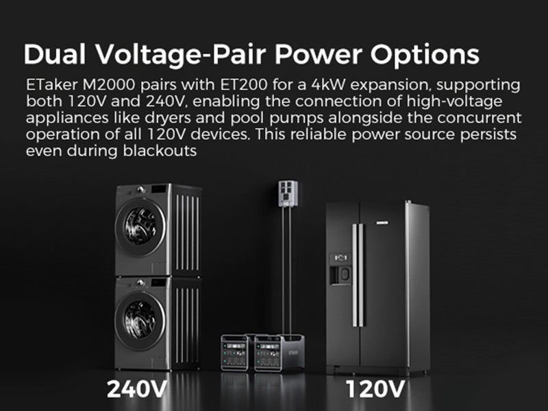 【Complete and Portable Camping Kit】The kit includes Portable Power Station M2000*2, Driving Fast Charger F1000*1, Connection Box ET200*1, and lightweight 200W Solar Panel *2. This comprehensive set is perfect for extended outdoor adventures, providing reliable power without the need for AC charging. It's also an excellent choice as a backup power source for households.