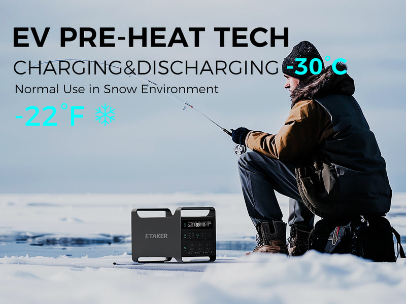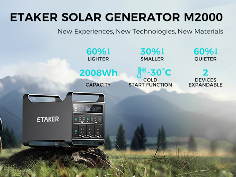 • 【Supports Fast Charging and Multiple Recharge Methods】 The portable power station achieves 70-80% charge in just 1 hour via AC charging(1200W MAX), reaching a full charge in 2 hours. By combining with 5 Etaker 200W smart MPPT controller solar panels (should purchased separately), it can be fully charged in 2.5 hours. Additionally, our product boasts unique features, supporting a full charge in 2.5 hours through wind power(1000W MAX) and 2 hours via a car charging station(1200W MAX), providing versatile and efficient energy solutions for your camping or family emergency storage.