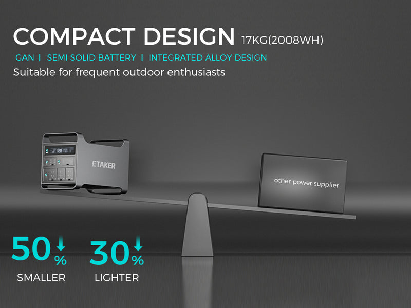 【Endure Challenging Conditions】Equipped with preheating technology for operation in -22°F(-30°C), the seamlessly integrated alloy shell design, inspired by the unified ID concept, combines high energy density from the semi-solid battery with the power density of GaN technology. 60% smaller and 30% lighter than similar products design ensures the power station is convenient, stylish, and easily portable for your on-the-go needs such as RV travels.