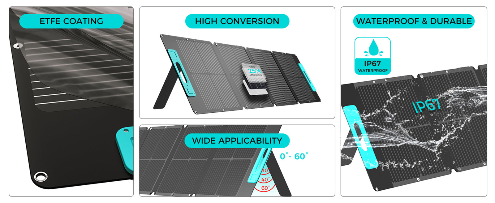 【High-Efficiency Conversion】Efficiently charge your devices with this high-performance ETAKER 200W foldable solar panel kit,conversion rate of 25%, perfect for family camping trips and outdoors.